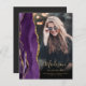 このトレンディー2025の卒業発表は、金ゴールドグリッターのハイライトと紫縁どの色合いでの水色のアゲーフェイクトを特徴とする。大学院名は金ゴールド色の手書き文字を縦写真に重ね合わせエレガント、学年や学年を含む学年を表したフォントで表されている。黒のグラデーションフ救済ィルターの文字ポップ・アートの。2つ目の水平な写真が背面に表示され、その発表と詳細とともに、暗いオフブラックの背景に金ゴールド色の文字が表示される。
