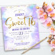 「Happy Sweet 16」。イベントが思い出す素晴らしためガーリーに、この、スパークモダンリー、カスタムフェスティバル、パーソナライズされた、パーティの招待状の予算を送信する。淡い金ゴールドホイルフェイクと小さな紙吹雪グリッタードットとタイポグラフィスクリプトは、柔らかい紫の水色の背景をオーバーレイ。娘の名カスタム前と他のパーティー詳細で文字をパーソナライズする。グリッター素晴らしとグラムを愛しファッショニスタてモダン、彼女の特別なパーティーにおもしろいを追加することを保証した出芽のためのスタイリッシュ!誕生日の女の子の名前、誕生日の年、パーティーの会場情報を入力するだけで、簡単にこの予算の誕生日の招待をカスタマイズできる。質問や要望があれば私に連絡して下さい。
