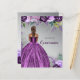 バジェットシルバーパープルグリッタースパークルドレスキンセアニラクインズ招待状、ダークスキンダークヘア