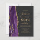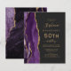 この50歳離れの誕生日パエレガントーティの手の端はモダン、金ゴールドの招待と一緒に紫の水の色縁どをトリミングしています。カスタマイズ可能な文字は、金ゴールド色の手書き入力、コピープレートおよび斜体のフォントを石板の黒い背景に組み合わせる。裏面は紫色と金ゴールド酸デザインが一致する。