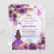 ダークモダンパープルバイオレット金ゴールドグリッタースパークルフローラバラバタフライプリンセスティアラクラウンキンセアニラ誕生日招待状