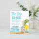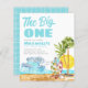 かわいい水色ザ大きなワンサーフウェーブトロピカルビーチ1歳の誕生日招待状