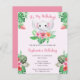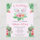 バジェットピンクエレファントガールベビー誕生日招待状