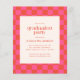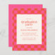 バジェットはっきりしたピンクとオレンジのチェッカーボードパターン卒業パーティー招待状