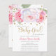 バジェットピンク赤面金ゴールドグリッターフローラガールベビーシャワー招待状