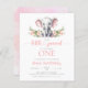 予算ピンクのフローラゾウの小さなピーナッツ女の子1st誕生日の招待。