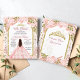 金ゴールドエレガントグリッターアーチとフローラプリンセスドレス15th誕生日キンセアニェラ招待状。