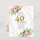 ピンクと金ゴールドの40歳の誕生日の祝誕生日への招待。水エレガント色フローラ及び金ゴールドグリッタータイポグラフィはスタイリッシュ及びtouchを加えユニークる。パーソナライズされたパーティー詳細。