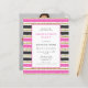 4.5インチx 5.6インチの低価格の代替品。デフォルトのオプションであるセミグロス110 lbカードストック(招待状の場合は厚い)またはサテン仕上げ80 lbシンナー紙ストック(エンクロージャの場合は理想的)で利用可能。封筒はオプションの追加カードで、カードサイズより少し大きい。このデザインのグラムピンクストライプとブラックのガーリー。簡単に文字をパーソナライズし、背中の写真を自分の写真に置き換える。
