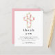 より小さいサイズ4.5 x 5.6インチ半光沢110ポンドの重量に代わるコストのBUDGETの値は、ポストカードと同様の厚さ(ただし、ポストカードとして使用するには適さない)。1枚につき1枚の招待状がある。ピンクの花模様クロスバプテスマありがとう。上半分に縁どはピンクの花の大きな十字がある。ヘッダは小文字で大きスタイリッシュく、下の詳細は小文字である。自分の詳細に文字を簡単にパーソナライズ。