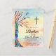 招待状の家族と友人のベビーのバプテスマへのスタイリッシュこの予算の招待。虹の色の家系図と水色の背景のクロスを特徴とする。簡単にカスタマイズできる詳細。このユニークデザインは、元々は明るい色のガラスの小さな断片から作られたファミリーツリーモザイクのプリントである。我々は独自のアートワークを作成するので、他のデザイナーからの正確な画像を見つけることができない。オリジナルモザイク©ミケーレ・デイヴィス。