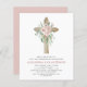 バジェット娘の埃っぽいバラピンクのフローラとユーカリ – クロス植物セージ緑の緑の水色宗教的な最初(1st)聖なる聖餐式招待状。