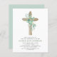 バジェットセージ緑の少年のユーカリとクロス植物緑の水色宗教的な最初(1番目)聖なる聖餐式招待状。