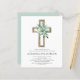 バジェットセージ緑のフローラ女の子のユーカリとクロス植物緑の水の色の宗教的な最初(1番目)聖なる聖餐会招待状。
