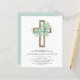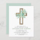 バジェットセージ緑の女の子のユーカリとクロス植物緑の水色宗教的な最初(1st)聖なる聖餐式招待状。
