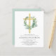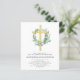 バジェットセージ緑のフローラ女の子のユーカリとクロス植物緑の水の色の宗教的な最初(1番目)聖なる聖餐会招待状。