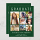 またモダンエレガントフレンドリー、予算に満ちた緑の卒業発表とパーティの招待状はトップに大きな白い文字で「GRADUATE」、7つの写真のコラージュと名前、クラスの年と学校の白いタイポグラフィでシンプルす。後ろに卒業式パーティー詳細を追加。