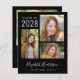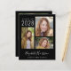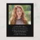 3つのフレンドリー写真写真コラージュとパーティの招待状、白い台本のスタイリッシュ中「卒業」と卒業生の名前、学年、学校やタイポグラフィの白い大学と共に予算黒卒業発表とモダン。反対側に、追加の写真と卒業パーティーの詳細を追加する。