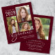 3つの写真写真のコラージュと白い台本に書の「卒業フレンドリー」を取り上げ、その名スタイリッシュ前、学年、学校やタイポグラフィを白いに組み込んだ大学を含む予算の高い赤い卒業発表とパーティの招待状モダン。反対側に、追加の写真と卒業パーティー詳細を追加する。