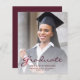 卒業発表モダンは縦写真を用いたカスタムもの。「Graduate」という言葉はバーガンディの台本に登場し、卒業生の名前、学年、卒業年はサンセリフフォントに記されている。サンプル画像を自分の卒業生の写真に簡単に置き換える。白いグラデーションスクリ救済ーンで文字ポップを確保。その逆の方が無地の激しい。高校や大学の卒業に最適。
