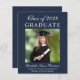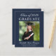 バジェットフレンドリー・ダーク・ブルーの大学の卒業発表は、卒業生の写真と彼の名前とクラスの年を白い台本と彼の大学でエレガント、白いタイポグラフィの名誉を特集してモダンいる。