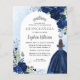 フローラネイビーブルーシルバーグレイプリンセスガウングリッタースパークルティアラクラウンバタフライ15誕生日キンセアニラ招待状