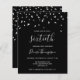 このモダンデザインは黒い背景に銀フェイク色の三角形の紙吹雪を備えている。「六十」という言葉は淡い灰色の手書きエレガントフォントに現れる。ライトグレーの手書きフォントで名誉のゲストの名前と、日付、場所、およびライトグレーのサンセリフのタイプで他の詳細を使用して招待をパーソナライズする。