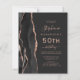 この50歳離れのバースディアの招待の手の端はエレガントバラの金ゴールドをトリミングし縁どて黒い水色のアグレを備えている。カスタマイズ可能な文字は、バラ色の手書き文字、コピープレートフォント、および斜体の文字を石板の黒い背景に組み合わせる。裏面は、一致する黒とバラ金ゴールドアガートデザインを備える。