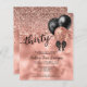 グラムモダンブエレガントラックスピンクローズ金ゴールドグリッタースパークル紙吹雪リボンリボンBowバルーン30th誕生日招待状