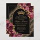 クラシックモダンエレガントグリッターグラムブラックブルガンディマルーンレッド金ゴールドフローラスパークル15th誕生日キンセアニェラ招待状