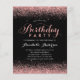 グラムモダンブラック赤面ホットピンクグリッタースパークルスクリプエレガントト書道任意の年齢誕生日招待状