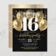 バジェットブラック金ゴールドグリッタースウィート16バルーン招待状