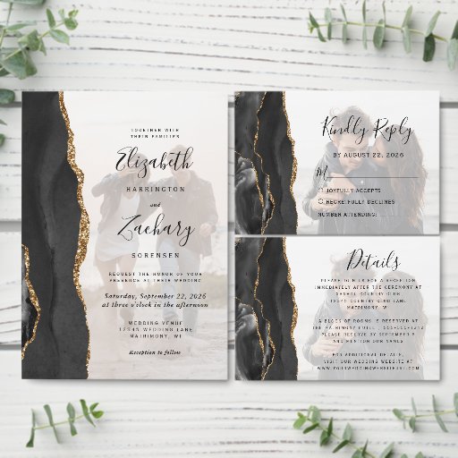 バジェットブラック金ゴールドゲート5 – フォト結婚式招待状