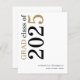 より小さいサイズ4.5 x 5.6インチ半光沢110ポンドの重量に代わるコストのBUDGETの値は、ポストカードと同様の厚さ(ただし、ポストカードとして使用するには適さない)。1枚に1枚ずつ。バジェット黒金ゴールド文字2025白の卒業発表。大きなモダンタイポグラフィが回転し、トップの手の側に黒と金ゴールドで離れて、あなたの卒業生のニュースを発表するタイポグラフィのデザイン。文字の残りの部分を簡単にパーソナライズする