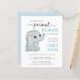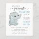 予算のフレンドリー男の赤ちゃんのシャワー招待状。"我々の甘い小さなピーナッツは彼の道にある"青書と柔らかい灰色のタイポグラフィとスワかわいらしッシュとスクリプトの組み合わせ。男の赤ちゃんの名前をパーソナライズし、男の赤ちゃん象の可愛い水色の横に青いタイポグラフィの母親とbeの名前を追加し、シャワー詳細をグレーのタイポグラフィでモダン追加すシンプルる。
