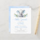 バジェット青いフローラゾウ小さなピーナッツ男の子1歳の誕生日の招待。