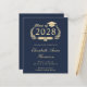 バジェットモダンフレンドリー・ダーク・ネイビー・ブルー・カレッジ卒業パーティの招待状は、ローレルリースの金ゴールドイラストレーションにグラードキャップトッパーとディプロマを組み込んだ「クラス」をフィーチャーし、卒業生の名前を軽い金ゴールドスクリプトにエレガント含む。学校、名誉または将来の計専攻の画、およびパーティー金ゴールドタイポグラフィの卒業の詳細を追加シンプルする。
