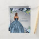 バジェットシルバーブルーグリッタースパークルドレスキンセアニラクインズ招待状、ダークスキンショートブラウンヘア