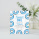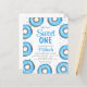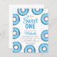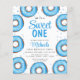 男の子の最初の誕生日パーティーを計画してる?この可愛い予算の誕生日飾招待は、青い水の色のドーナツとスタイリッシュタイポグラフィ。簡単にカスタマイズ可能オリジナル水彩©ミケーレ・デイヴィス。
