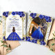 金ゴールドエレガントグリッターアーチとフローラプリンセスドレス15th誕生日キンセアニェラ招待状。