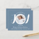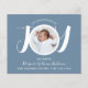 この予算誕生生まれたばかりの発表であなたの美しい男の赤ちゃんを紹介しなさい。フロントは青い背景に白いスクリプトスタイリッシュタイポグラフィの単語joyを備え生まれたばかりの、あなたの写真、フルネーム、到着日、および誕生統計。カードの背面には、2枚の写真を追加できる。