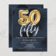 予算ダークミッドナイトブルーと金ゴールドの50歳の誕生日の招待。第50フォイルバルーンデザイン。