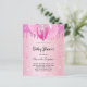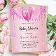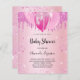 赤ん坊のシャワー祝は、赤ん坊の女の子。赤面ピンクフェイクのメタリックな背景。飾フェイクグリッターと風船Mom to-beの名前とパーティー詳細の名前をカスタマイズして追加する。名前と文字:赤ちゃんシャワーは手書で書かれたスタイルの台本と共にある