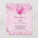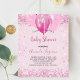 赤ん坊のシャワー祝は、赤ん坊の女の子。赤面ガーリーピンクの背景。飾フェイクグリッターの塵でママをパーソナライズし、beの名前とパーティー詳細を追加。名前と文字:赤ちゃんシャワーは手書で書きたスタイルスクリプトと。黒とピンクの色の文字