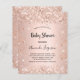 赤ん坊のシャワー祝は、赤ん坊の女の子。バラ金ゴールドフェイクの金属的な背景。飾バラ金ゴールド、ピンクフェイクグリッター。ママをパーソナライズし、beの名前とパーティー詳細を追加。名前と文字:赤ちゃんシャワーは手書で書かれたスタイルの台本と共にある