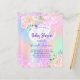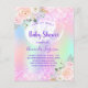 紫、ピンク、ミントグリーン、バラ金ゴールドの色の虹、ホログラフィックな背景。飾赤面のピンクフェイクグリッター、キラキラと白い風船と。名前とパーティー・詳細のパーソナライズおよび追加名前は手書文字のスタイルと紫の色の文字です。