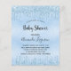 赤ん坊のシャワー祝は、男の赤ちゃんだ。薄い青色のフェイクメタリックな背景。飾フェイクグリッタードリッ絵を描プで。母の名前とパーティー詳細のためのテンプレート。名前と文字:赤ちゃんシャワーは手書で書かれたスタイルの台本と共にある