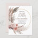 予算このBoho赤面をパーソナライズしますモダンPink, Mauve, and エレガント Roundフローラ植物水彩教室2023年の卒業パーティーのクラススタイリッシュは、メッセージと詳細と白い背景の招待状で。このシックな招待には、バラの花モダンや、特別な高校や大学の卒業生のためのキュートでスクリプエレガントトタイポグラフィを持つススキが含まれている。