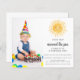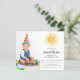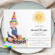 男の子の太陽をテーマにした最初の誕生日パーティーを計画しているのか?この可愛い予算の招待は黄色の水の色の笑顔の日とスクリプスタイリッシュトのタイポグラフィ。写真や詳細で簡単にカスタマイズ。オリジナル水彩©ミケーレ・デイヴィス。