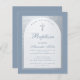 洗礼モダンの招き長方形の背景には、白い背景にフェイクほこりっぽい青い文字の内側を持つ銀箔のアーチがある。バプテスマと名は書書書の中にあるエレガントが、最初の行はアーチ型の文字。